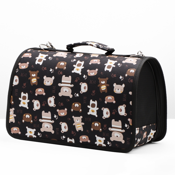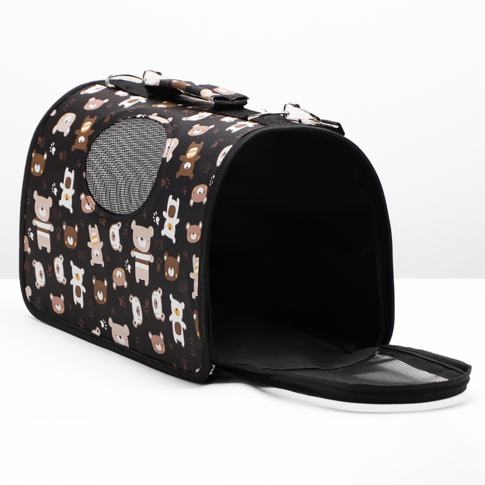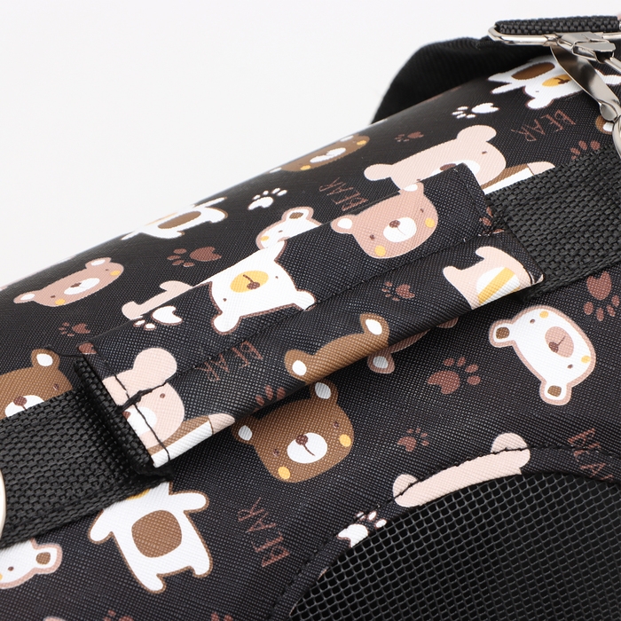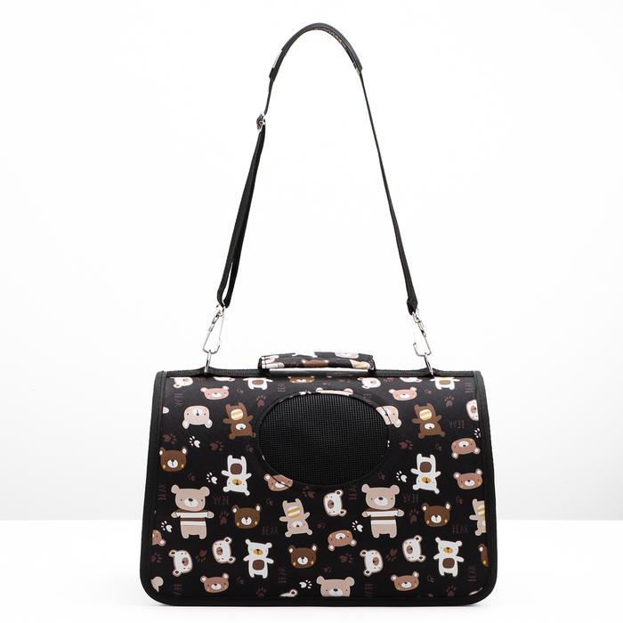 Сумка - переноска для животных "Медвежонки", чёрная, размер S, 37,5 х 17 х 22 см