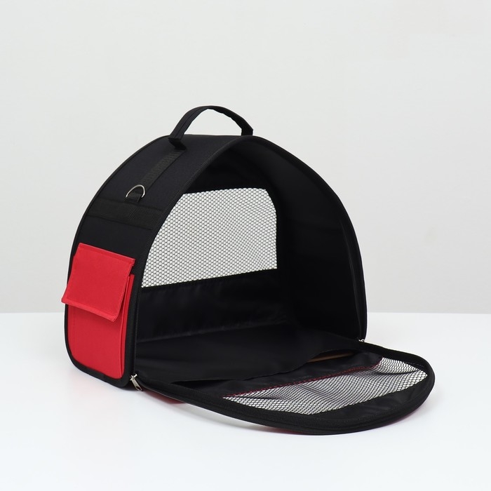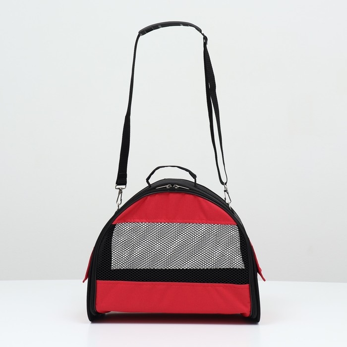 Сумка - переноска для животных, полукруглая с карманоми ПВХ, 37 х 18 х 25 см, красная