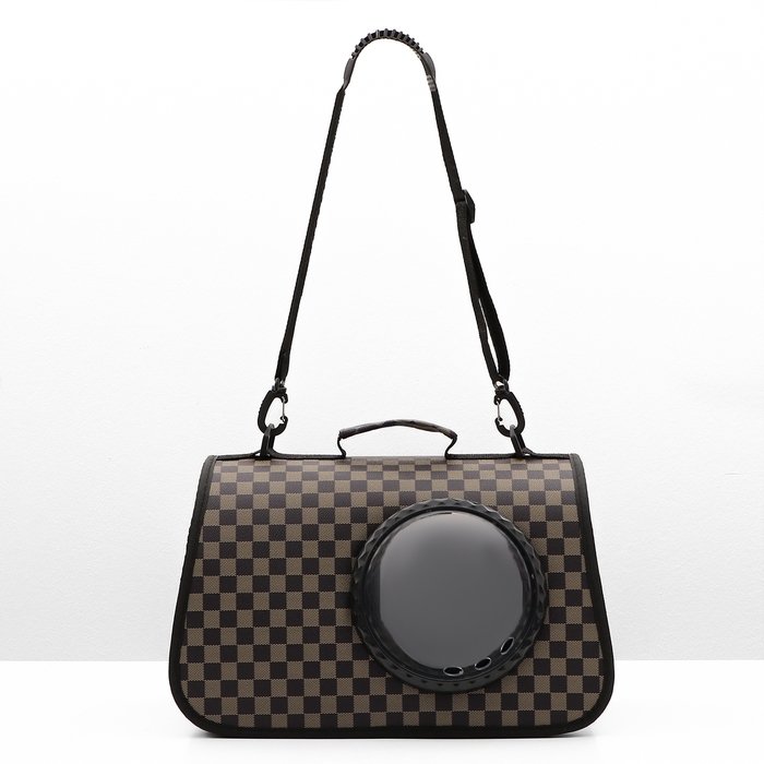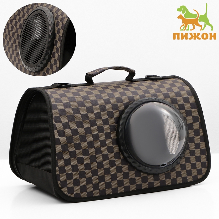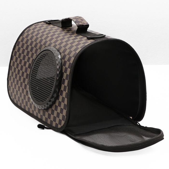 Сумка-переноска для животных с окном "Клетка", коричневая, 40 х 26 х 26 см
