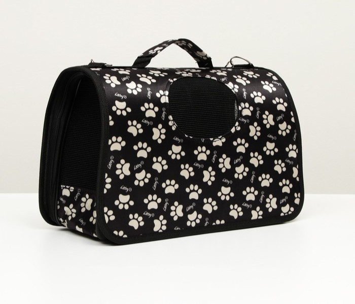 Сумка-переноска каркасная "Лапки Happy" , размер М, 40 х 21 х 27 см, чёрная