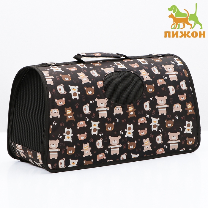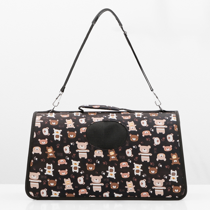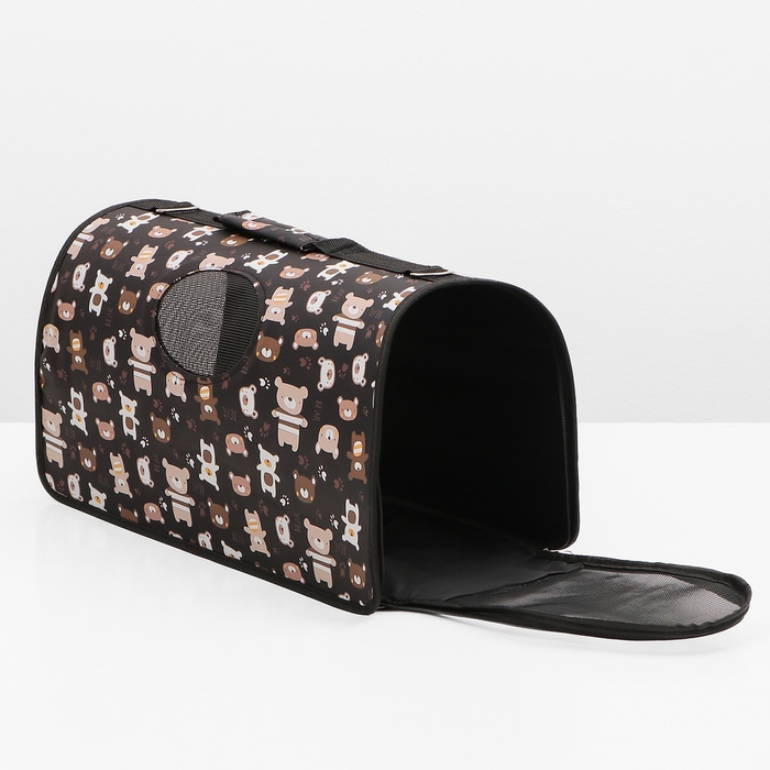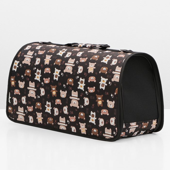 Сумка-переноска каркасная "Медвежонки", размер L, 53 х 21 х 29 см, чёрный