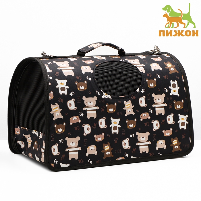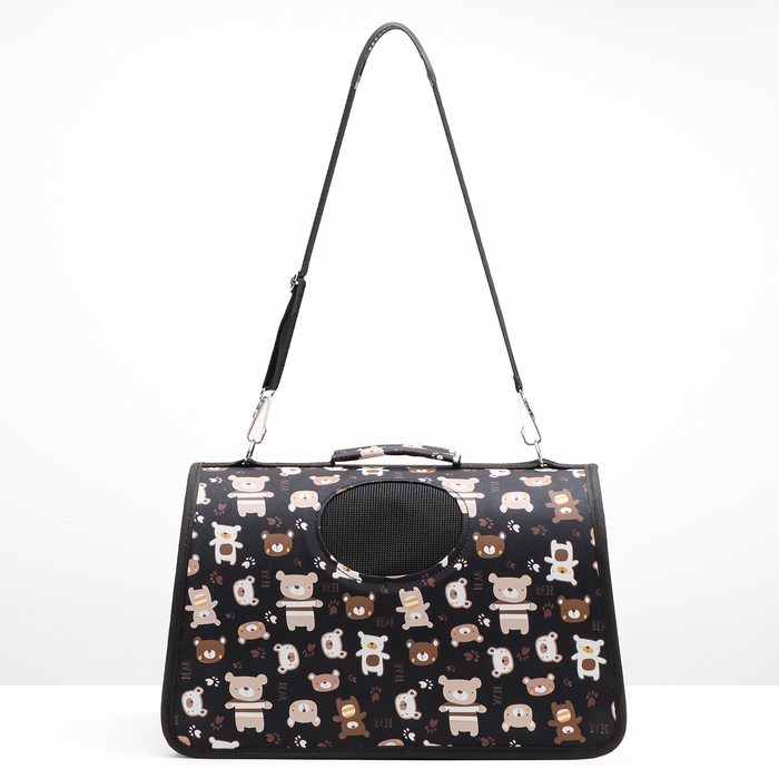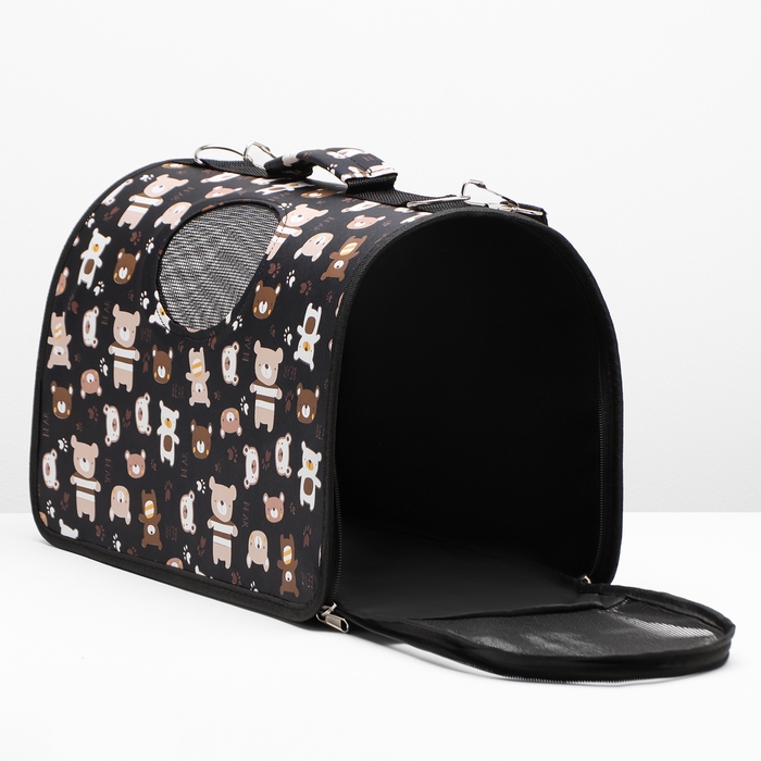 Сумка-переноска каркасная "Медвежонки", размер M, 40 х 21 х 27 см, чёрный