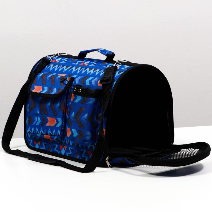 Сумка - переноскара для животных, каркасная с карманами, 40 х 25 х 26 см, синяя