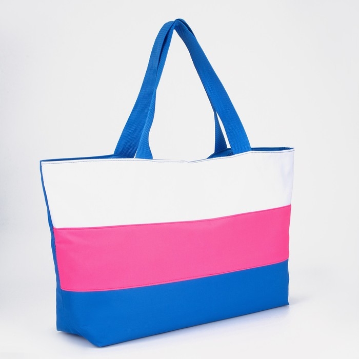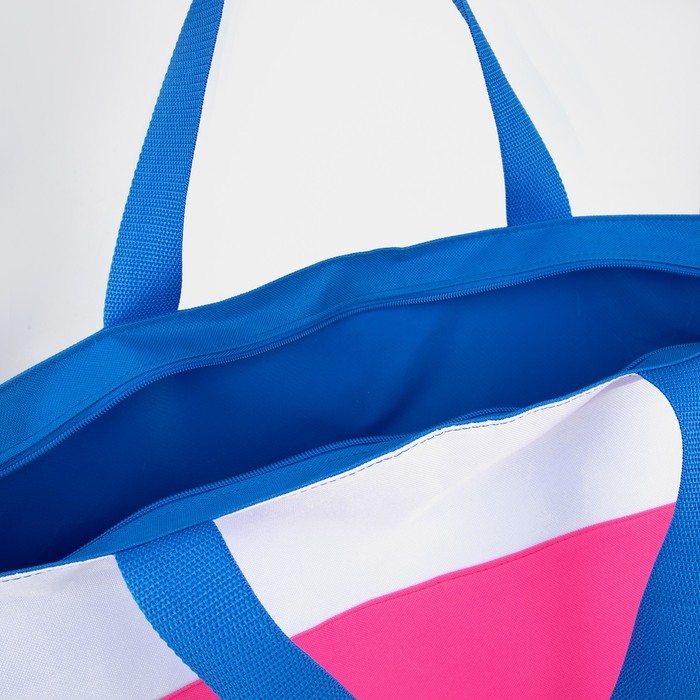 Сумка пляжная на молнии, без подклада, цвет синий/розовый/белый