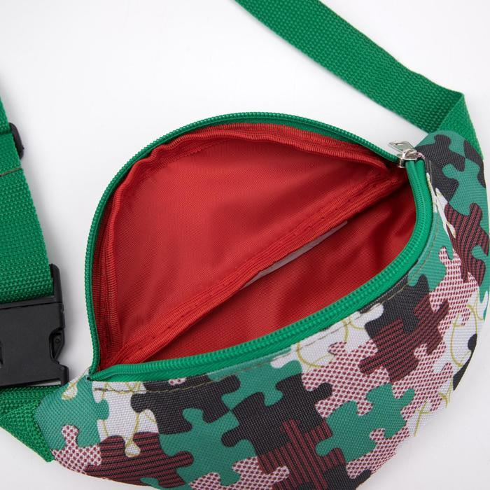 Сумка поясная детская на молнии, цвет зелёный