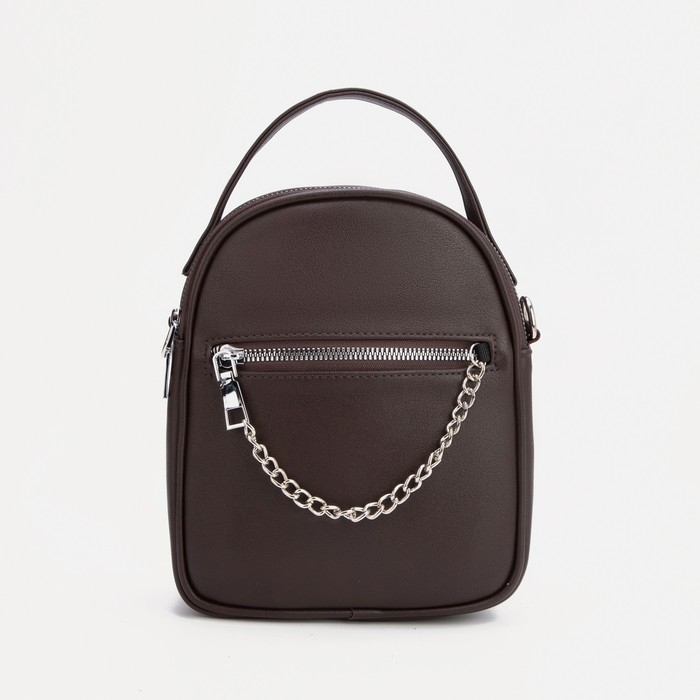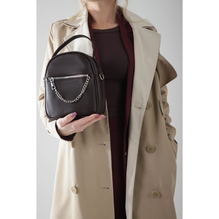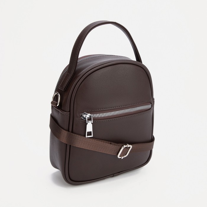 Сумка-саквояж на молнии, 2 наружных кармана, длинный ремень, ручка, цвет коричневый