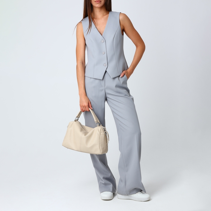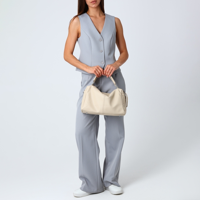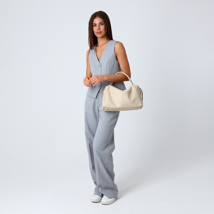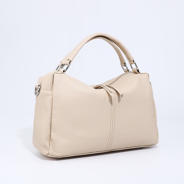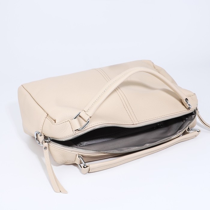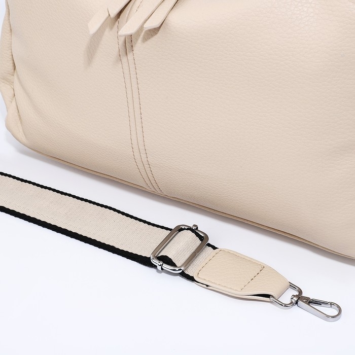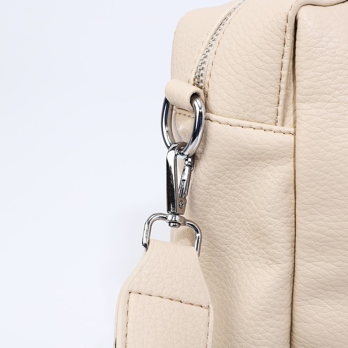 Сумка-саквояж на молнии, длинный ремень, цвет бежевый