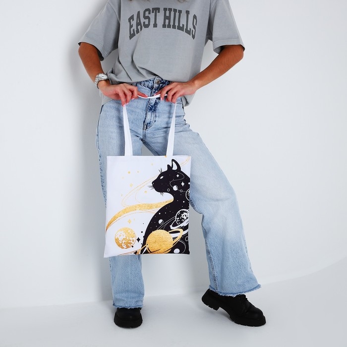 Сумка-шопер Космический без молнии, без подкладки, цвет белый