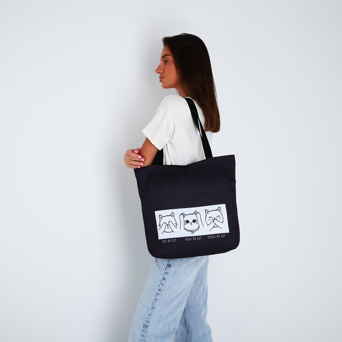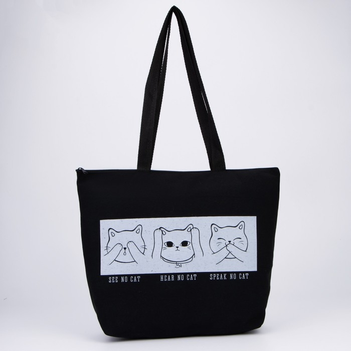 Сумка шопер Коты на молнии, без подкладки, цвет чёрный