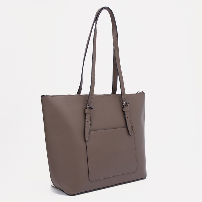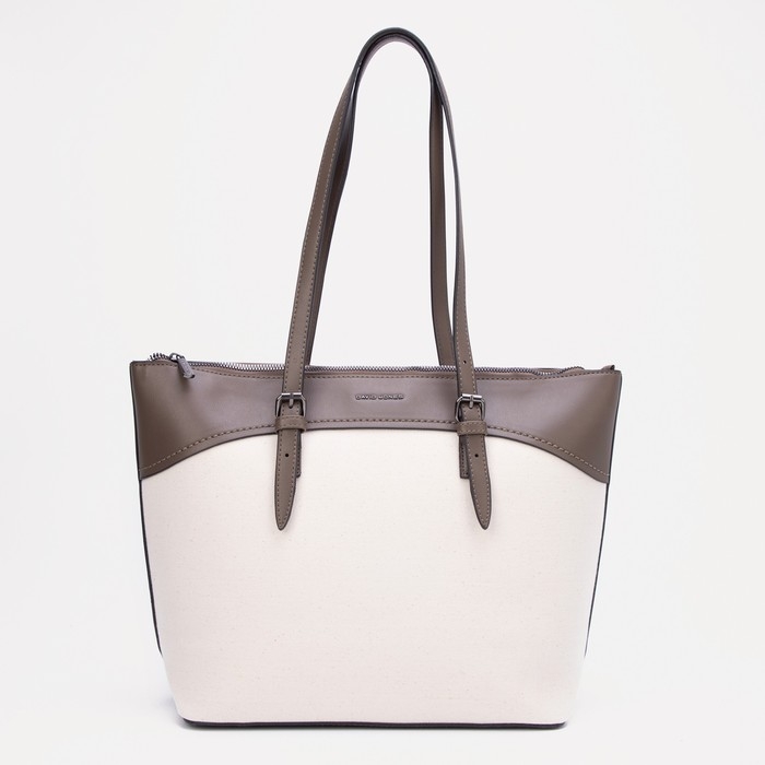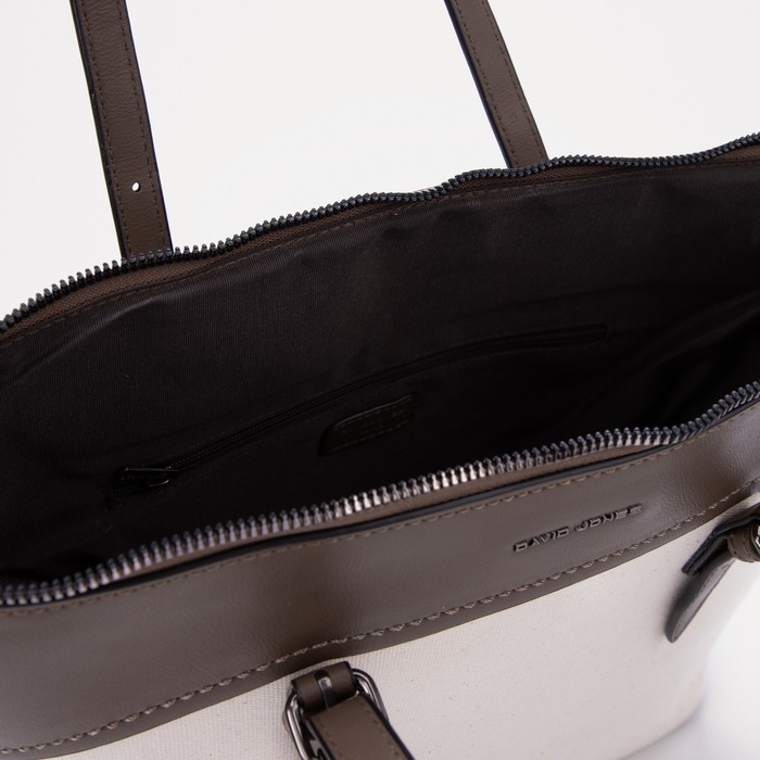 Сумка-шопер женская на молнии, David Jones, наружный карман, бежевый/коричневый