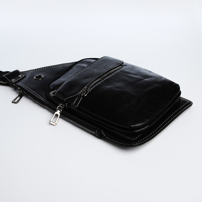 Сумка-слинг мужская из искусственной кожи, цвет чёрный