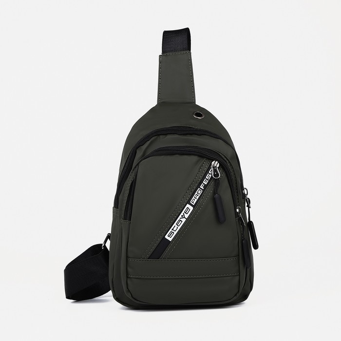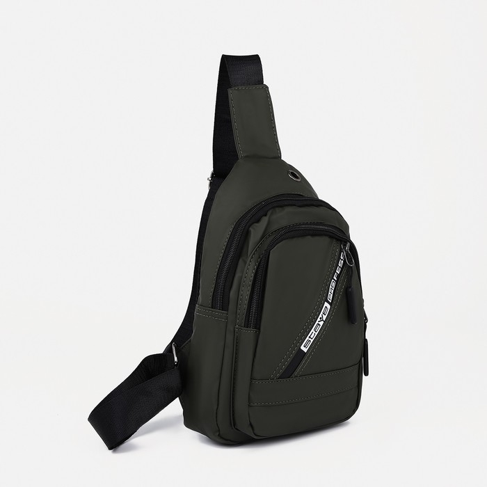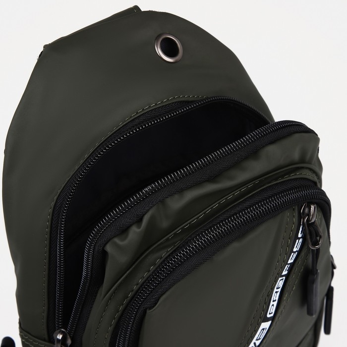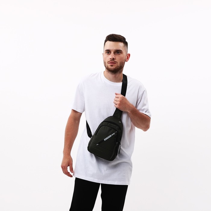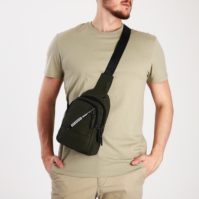 Сумка-слинг мужская из текстиля, отверстие для наушников, цвет зелёный