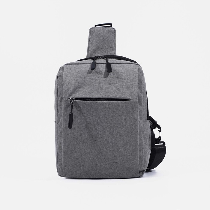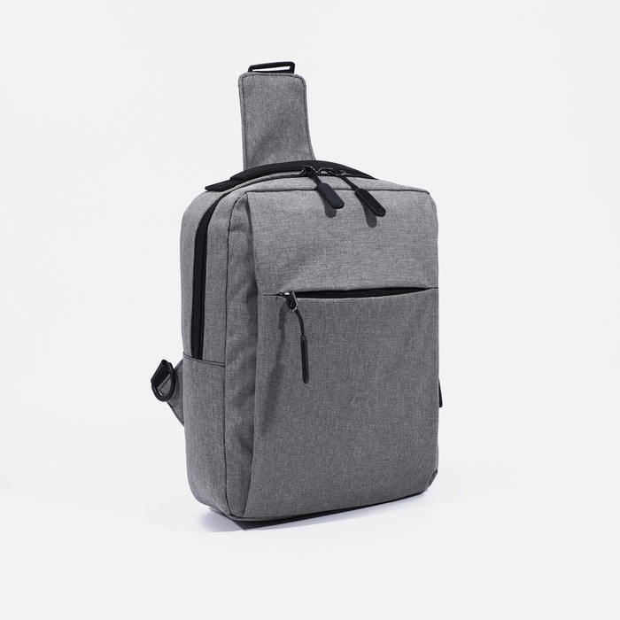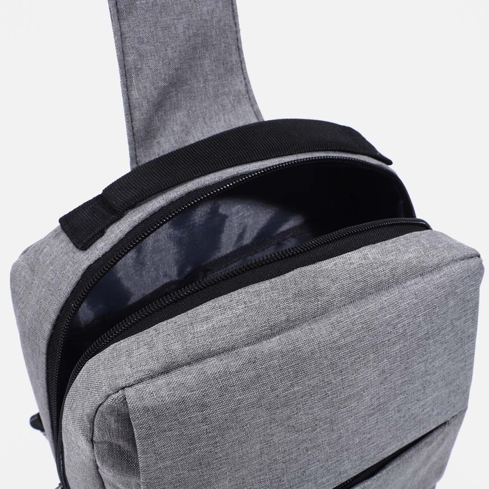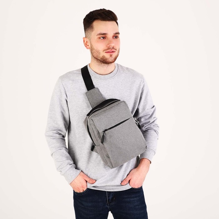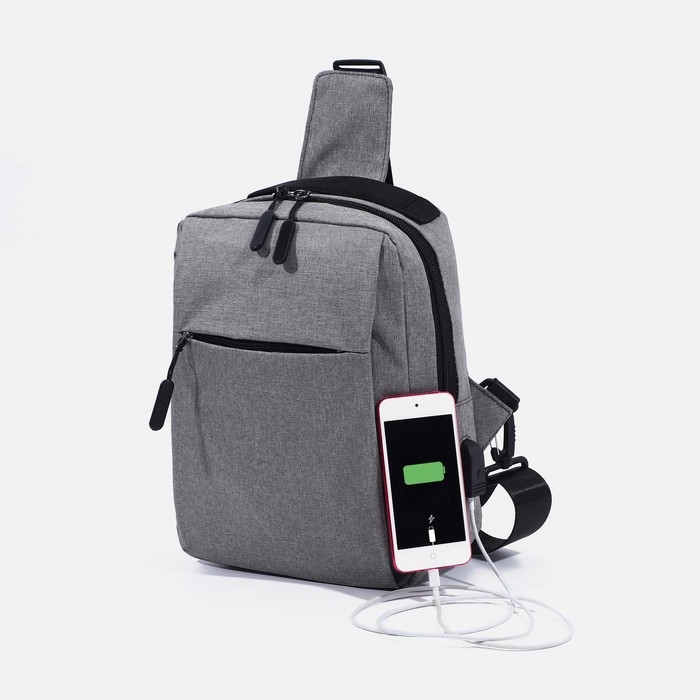 Сумка-слинг мужская из текстиля, с USB, цвет серый