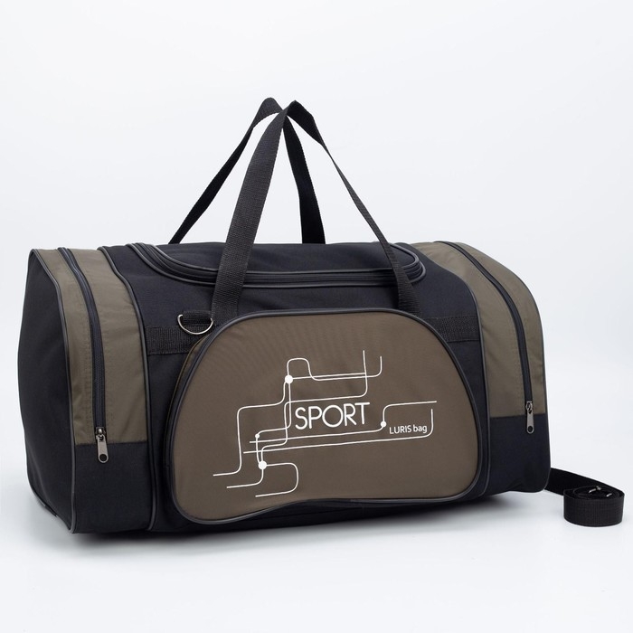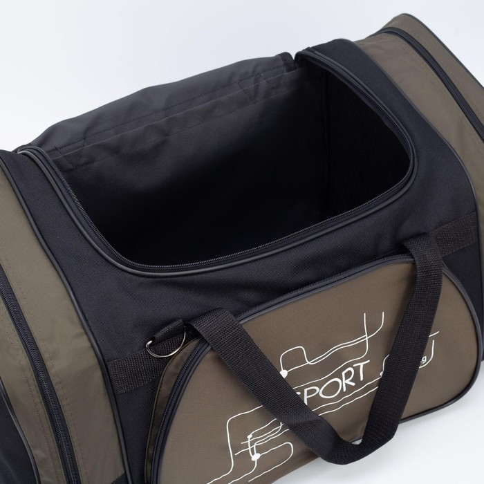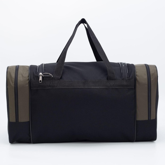 Сумка спортивная, 3 отдела на молниях, наружный карман, длинный ремень, большой размер, цвет чёрный/хаки