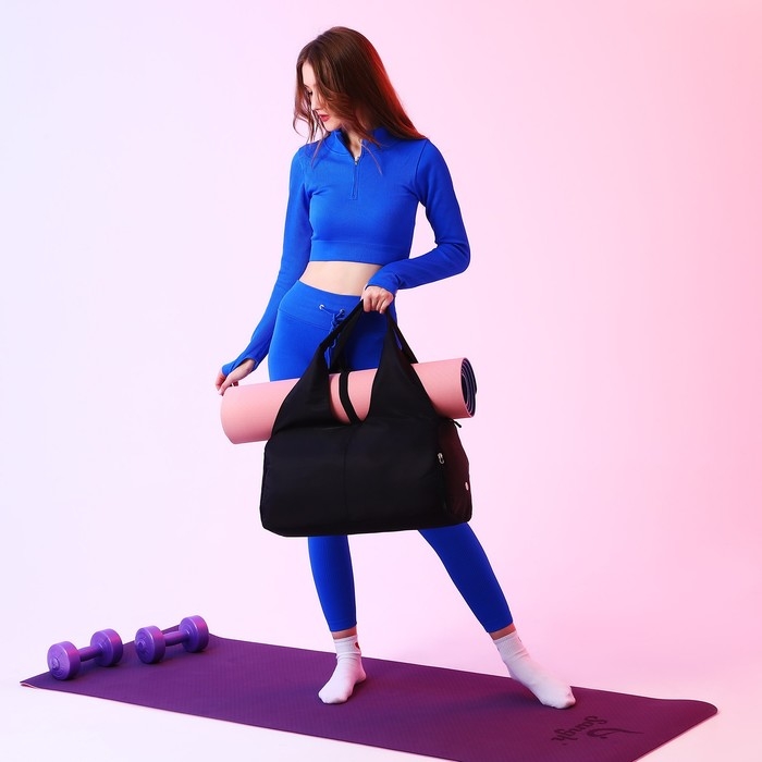 Сумка спортивная для йоги, на молнии, 48*25*21 см, цвет чёрный
