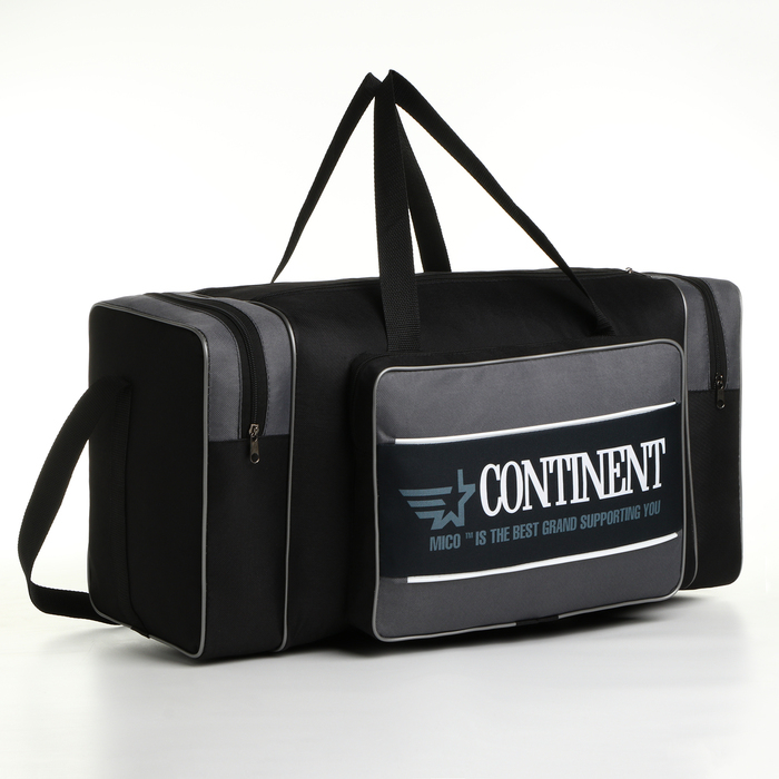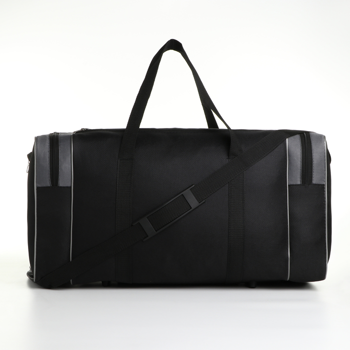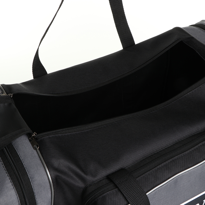 Сумка спортивная мужская на молнии, 3 наружных кармана, большой размер, цвет чёрный/серый
