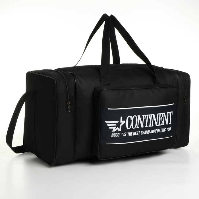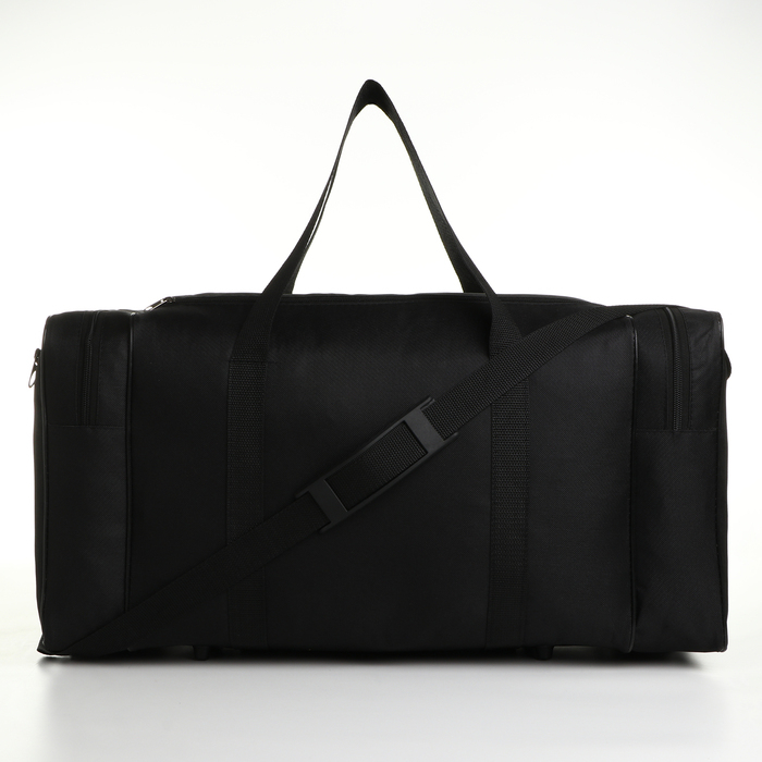 Сумка спортивная мужская на молнии, 3 наружных кармана, длинный ремень, большой размер, цвет чёрный