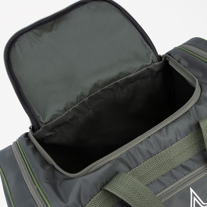 Сумка спортивная мужская на молнии, 3 наружных кармана, длинный ремень, средний размер, цвет зелёный
