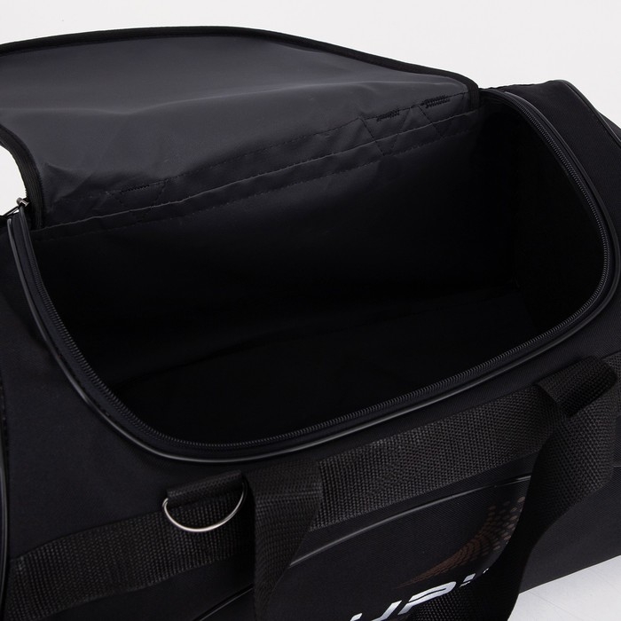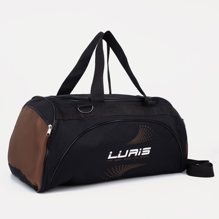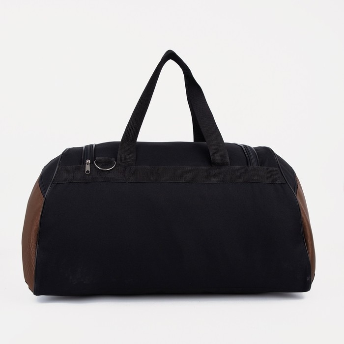 Сумка спортивная на молнии, 2 наружных кармана, длинный ремень, средний размер, цвет чёрный/коричневый