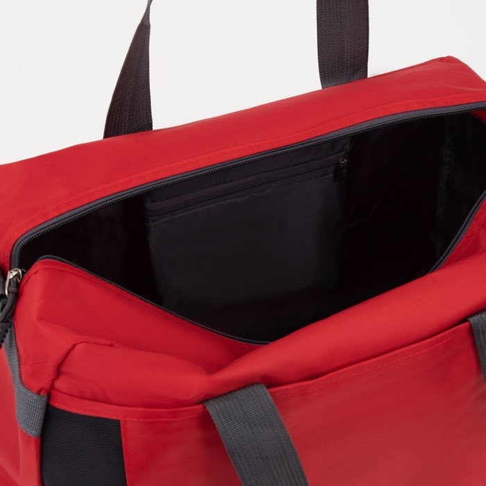 Сумка спортивная на молнии, 2 наружных кармана, средний размер, цвет красный