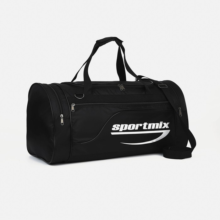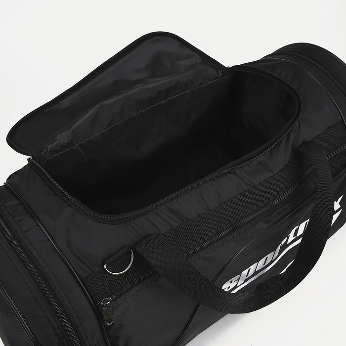 Сумка спортивная на молнии, 3 наружных кармана, длинный ремень, большой размер, цвет чёрный