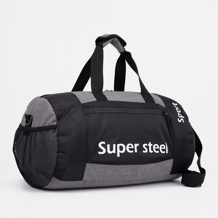 Сумка спортивная на молнии, наружный карман, регулируемый ремень, маленький размер, цвет чёрный/серый