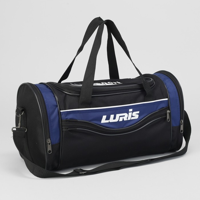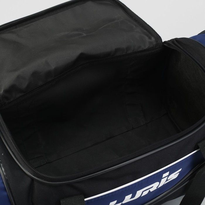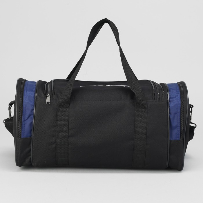 Сумка спортивная на молнии, 3 наружных кармана, длинный ремень, средний размер, цвет чёрный/синий