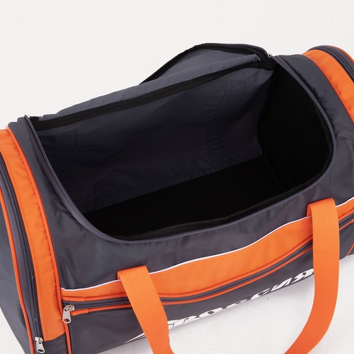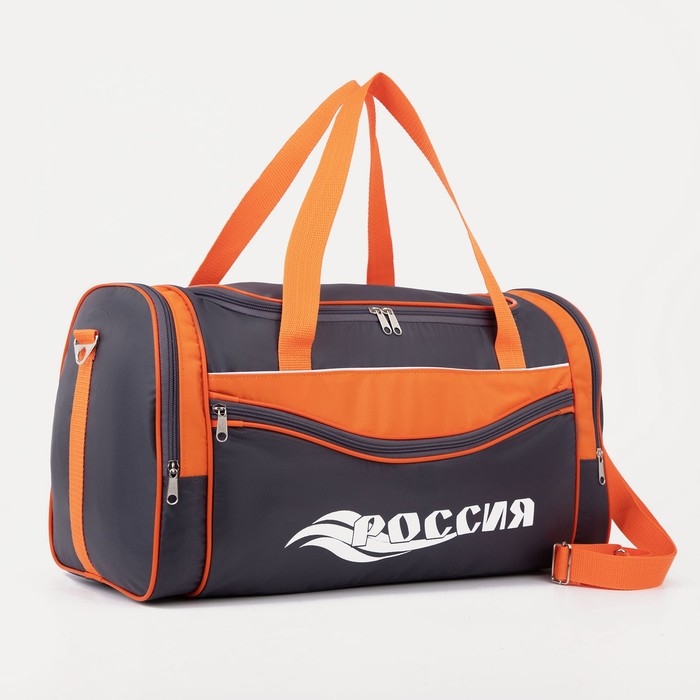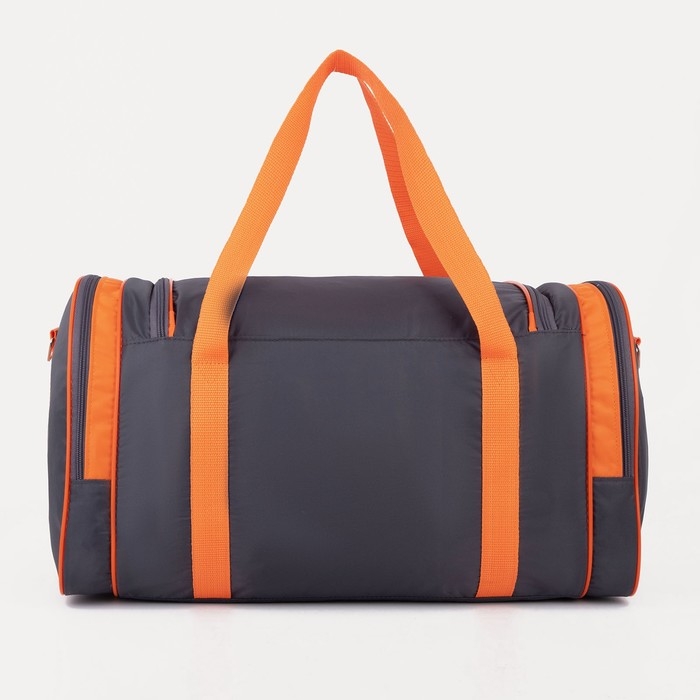 Сумка спортивная на молнии, 3 наружных кармана, длинный ремень, средний размер, цвет серый/оранжевый