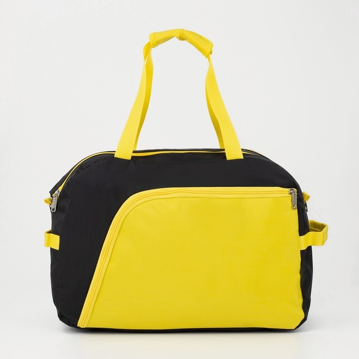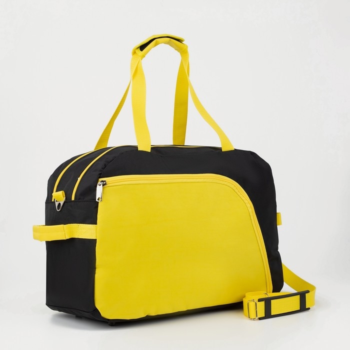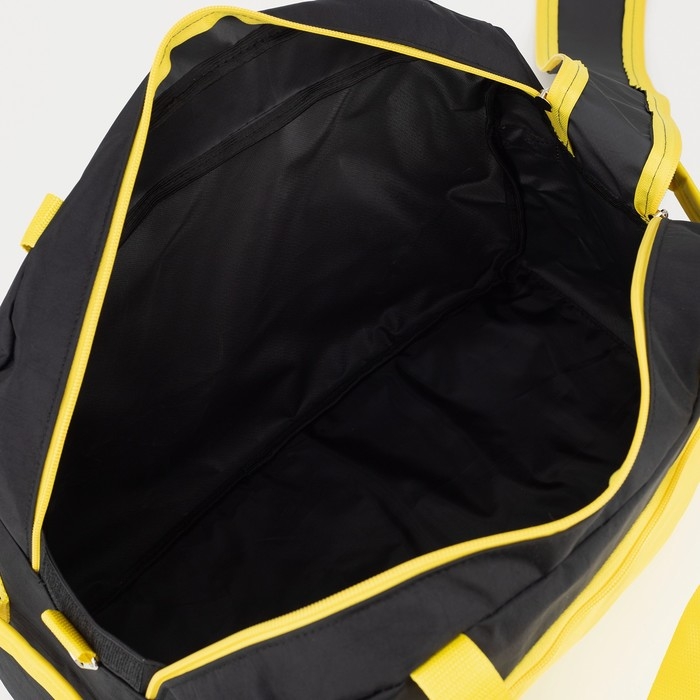 Сумка спортивная на молнии, без подкладки, 2 наружных кармана, средний размер, цвет чёрный/жёлтый