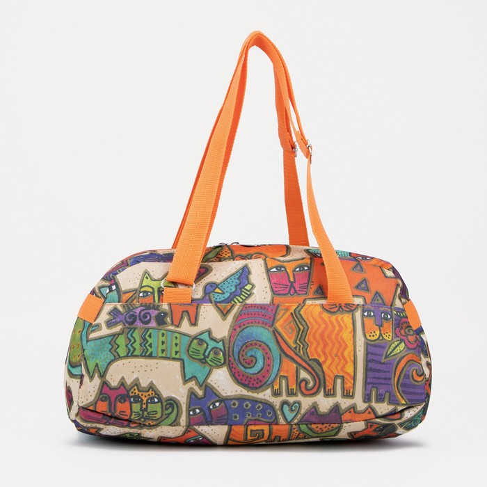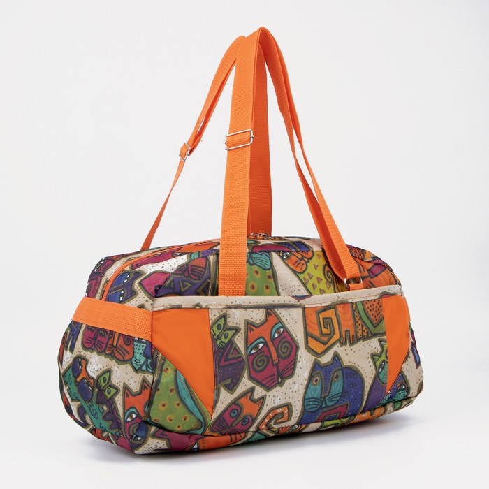 Сумка спортивная на молнии, без подкладки, наружный карман, маленький размер, цвет оранжевый/бежевый