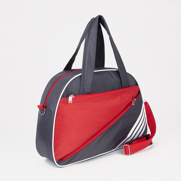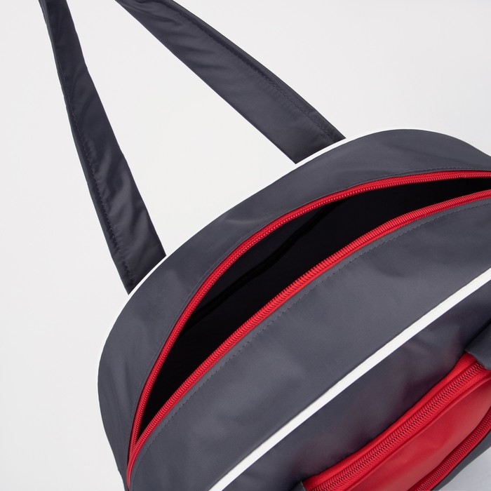 Сумка спортивная на молнии, без подкладки, наружный карман, средний размер, цвет серый/красный
