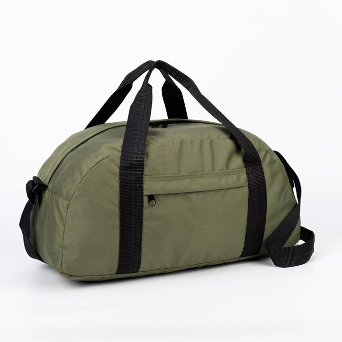 Сумка спортивная на молнии, без подкладки, наружный карман, средний размер, длинный ремень, цвет хаки