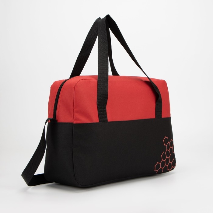 Сумка спортивная на молнии, длинный ремень, маленький размер, цвет чёрный/красный