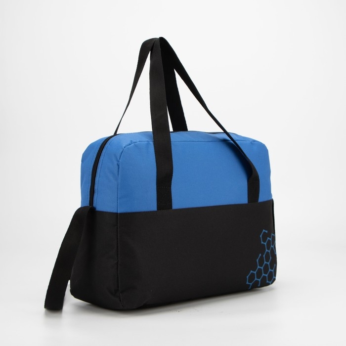 Сумка спортивная на молнии, длинный ремень, маленький размер, цвет чёрный/синий