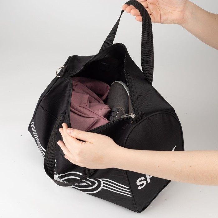 Сумка спортивная на молнии, длинный ремень, маленький размер, цвет чёрный