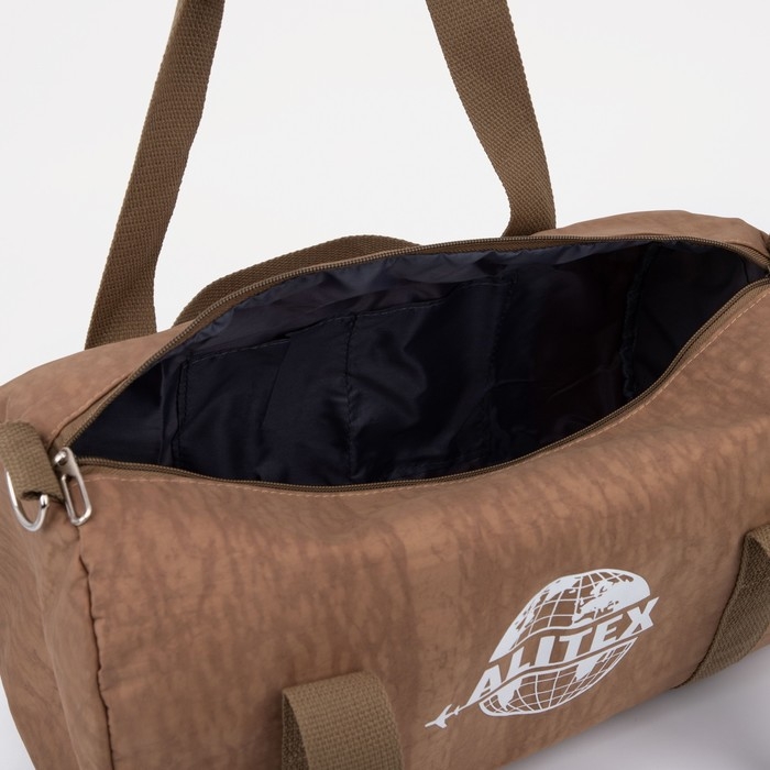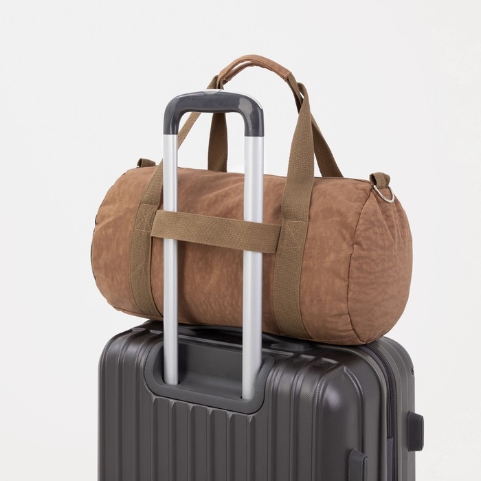 Сумка спортивная на молнии, наружный карман, держатель для чемодана, средний размер, цвет бежевый