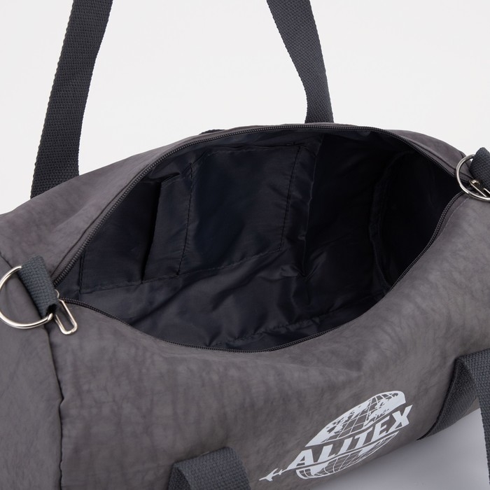 Сумка спортивная на молнии, наружный карман, держатель для чемодана, средний размер, цвет серый