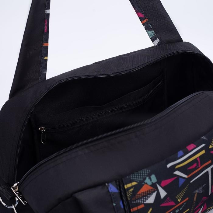 Сумка спортивная на молнии, наружный карман, длинный ремень, средний размер, цвет чёрный