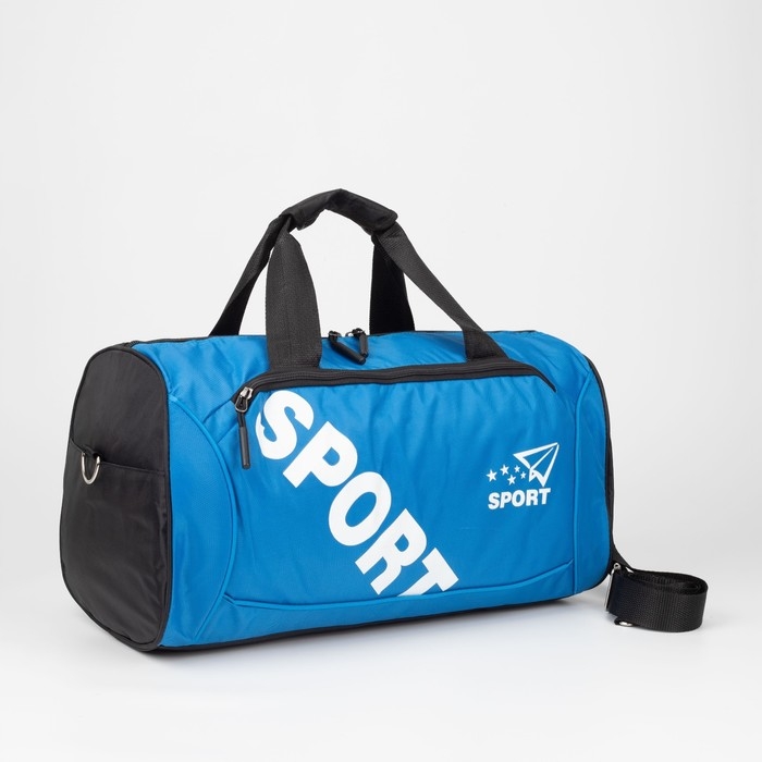 Сумка спортивная на молнии, наружный карман, длинный ремень, средний размер, цвет голубой