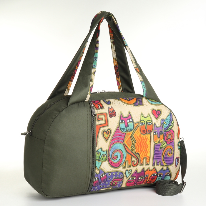 Сумка спортивная на молнии, наружный карман, длинный ремень, средний размер, цвет хаки