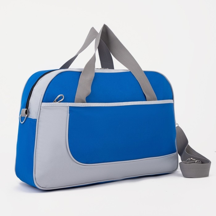 Сумка спортивная на молнии, наружный карман, средний размер, цвет серый/синий