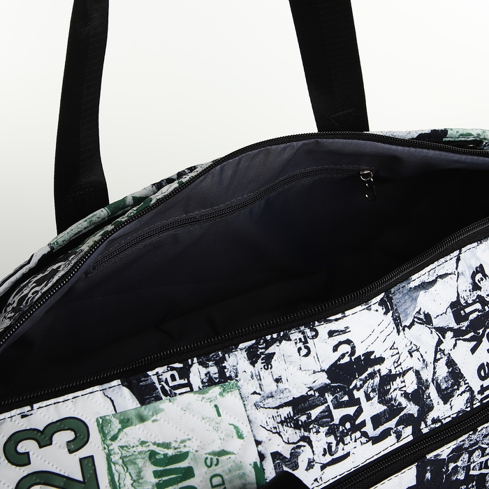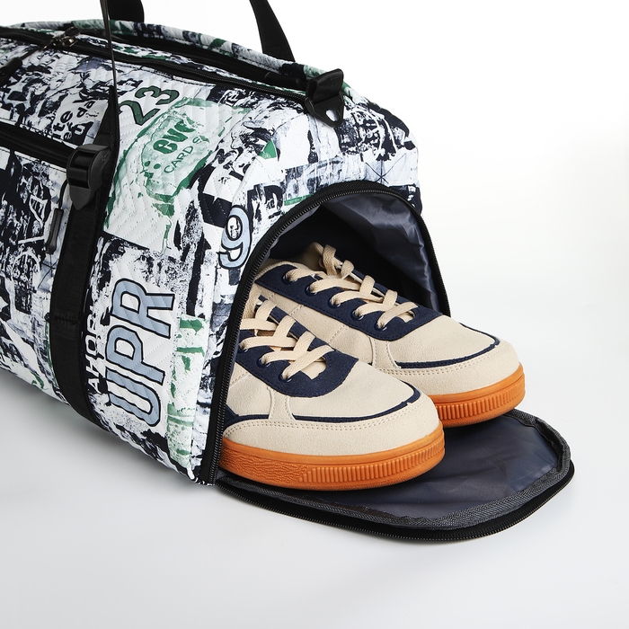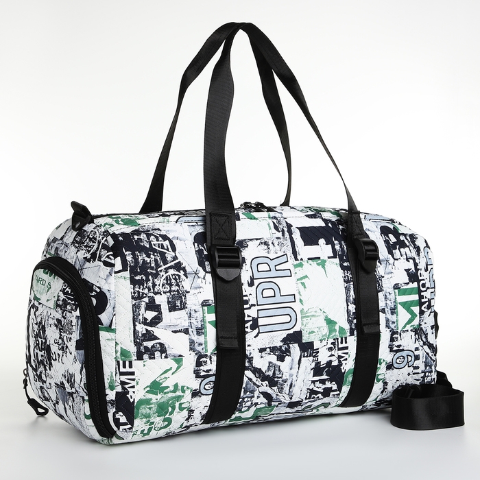 Сумка спортивная на молнии, отдел для обуви, 2 наружных кармана, длинный ремень, средний размер, цвет белый/зелёный