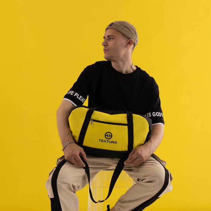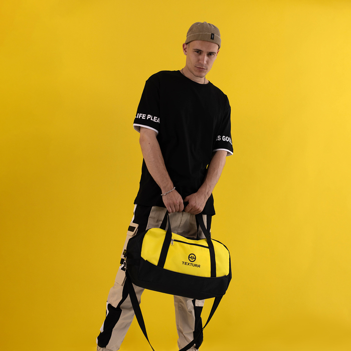 Сумка спортивная, TEXTURA, средний размер, цвет чёрный/лимон