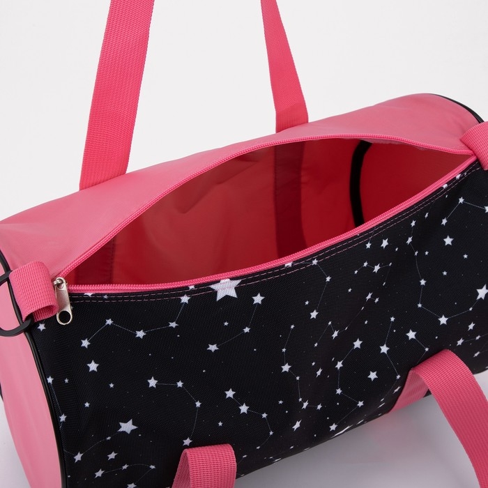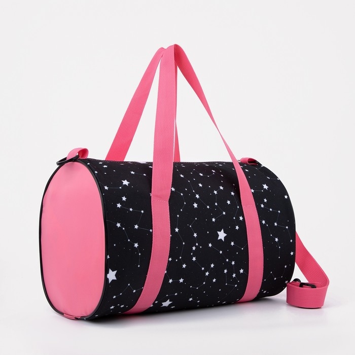 Сумка спортивная женская на молнии, длинный ремень, маленький размер, цвет чёрный/розовый