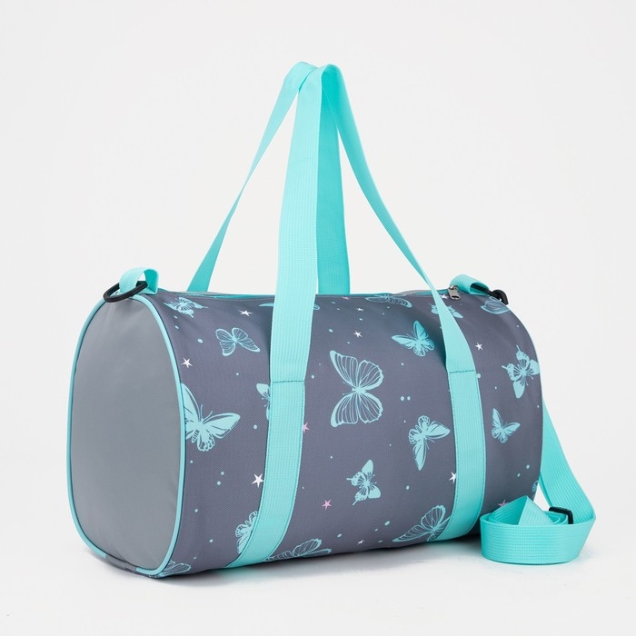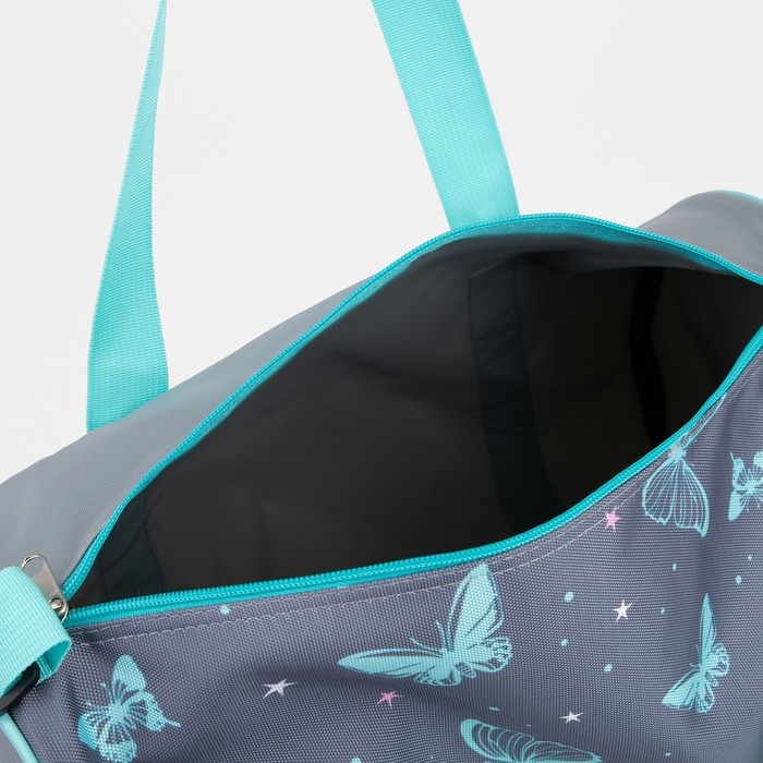 Сумка спортивная женская на молнии, длинный ремень, маленький размер, цвет серый/бирюзовый