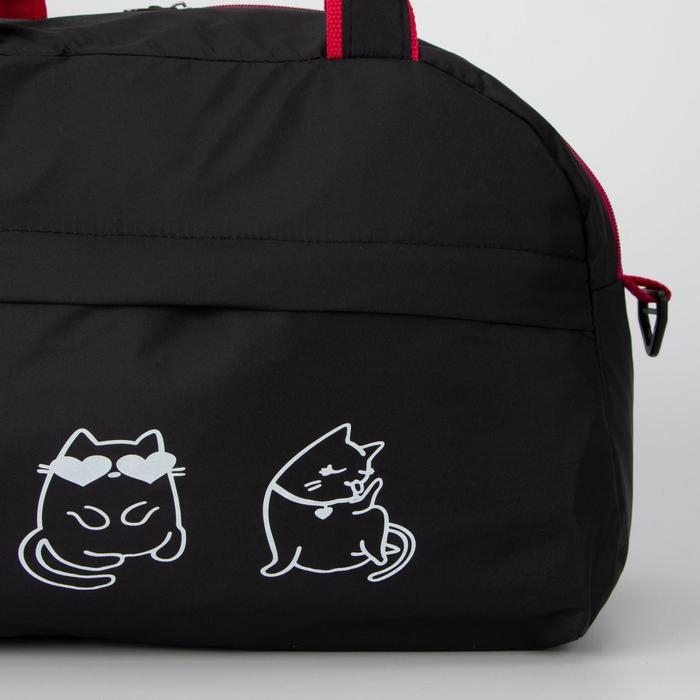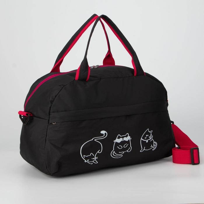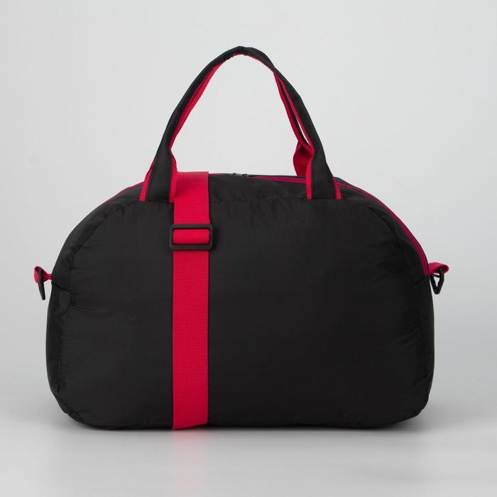 Сумка спортивная женская на молнии, наружный карман, длинный ремень, средний размер, цвет чёрный/красный