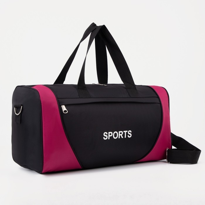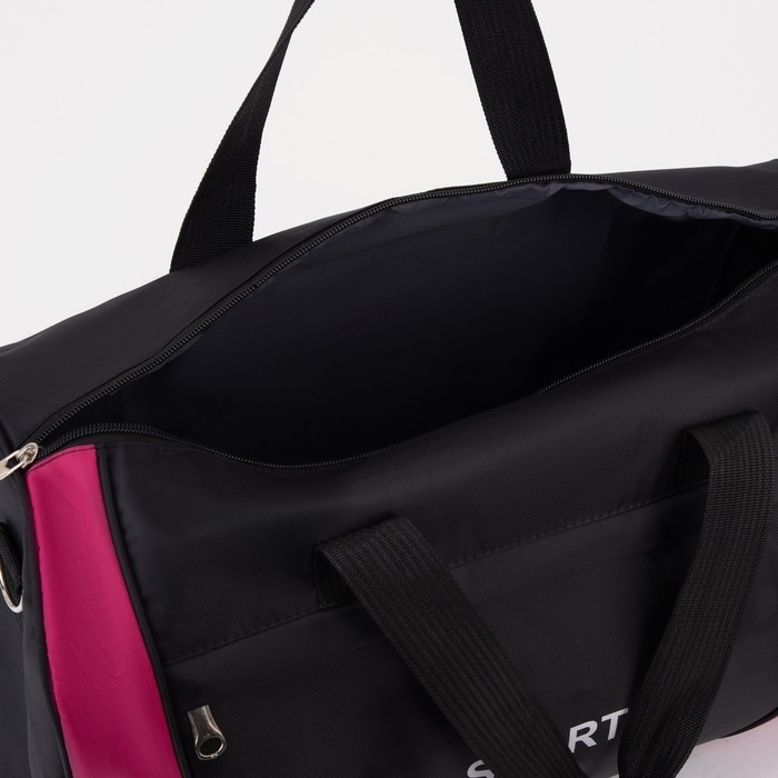 Сумка спортивная женская на молнии, наружный карман, средний размер, цвет чёрный/розовый