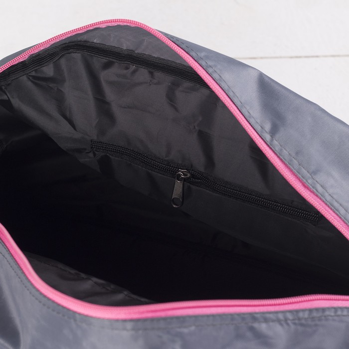 Сумка спортивная женская на молнии, наружный карман, средний размер, цвет серый/розовый