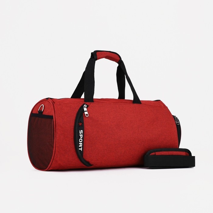 Сумка спортивная женская на молнии, отдел для обуви, 2 наружных кармана, длинный ремень, средний размер, цвет бордовый