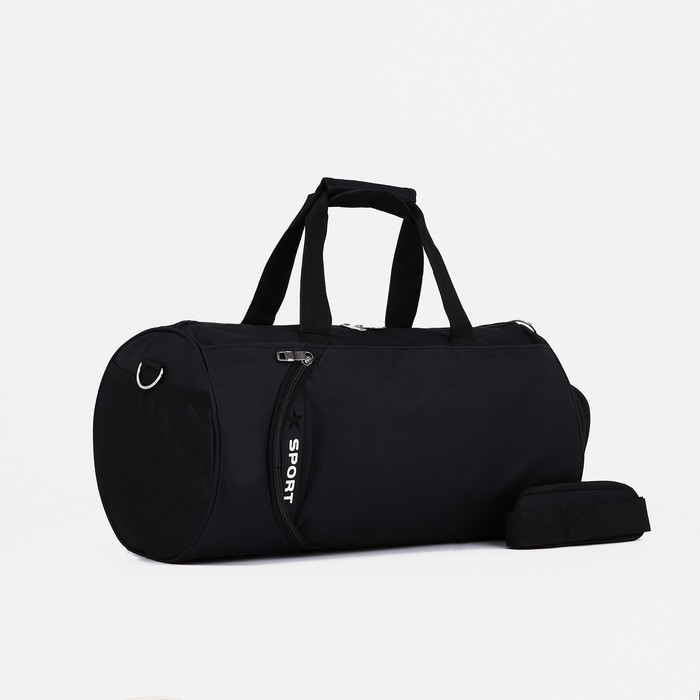 Сумка спортивная женская на молнии, отдел для обуви, 2 наружных кармана, длинный ремень, средний размер, цвет чёрный